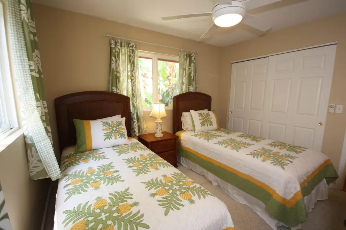 Relax in the spacious living and family rooms, stream your favorite shows on the 75-inch TV, or enjoy the Hawaiian breeze from the private backyard lanai. Fire up the BBQ for outdoor dining under the palms, or take a sunset stroll down to Magic Sands Beach — a local favorite for boogie boarding, sea turtle spotting, and unforgettable sunsets.